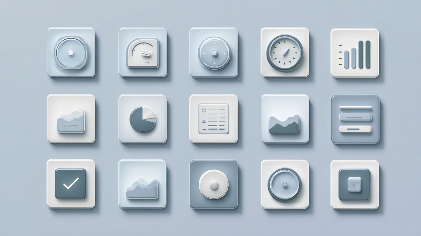 neumorphic dashboard icon set, soft gray tones, subtle shadows, clean modern UI --ar 16:9 --style raw