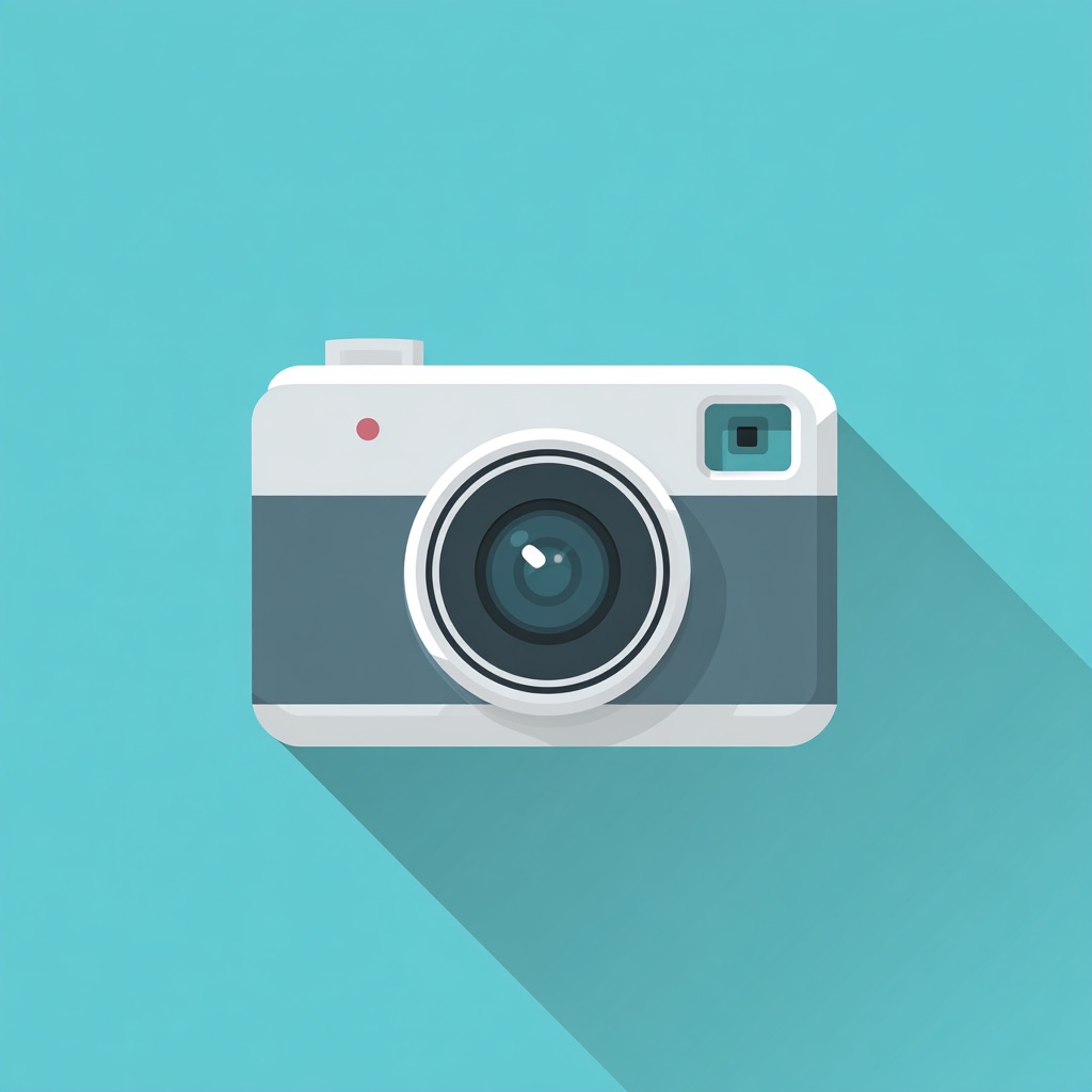 minimalist flat vector icon of camera app, bright teal background, centered composition, soft shadow, no text --ar 1:1 --style raw