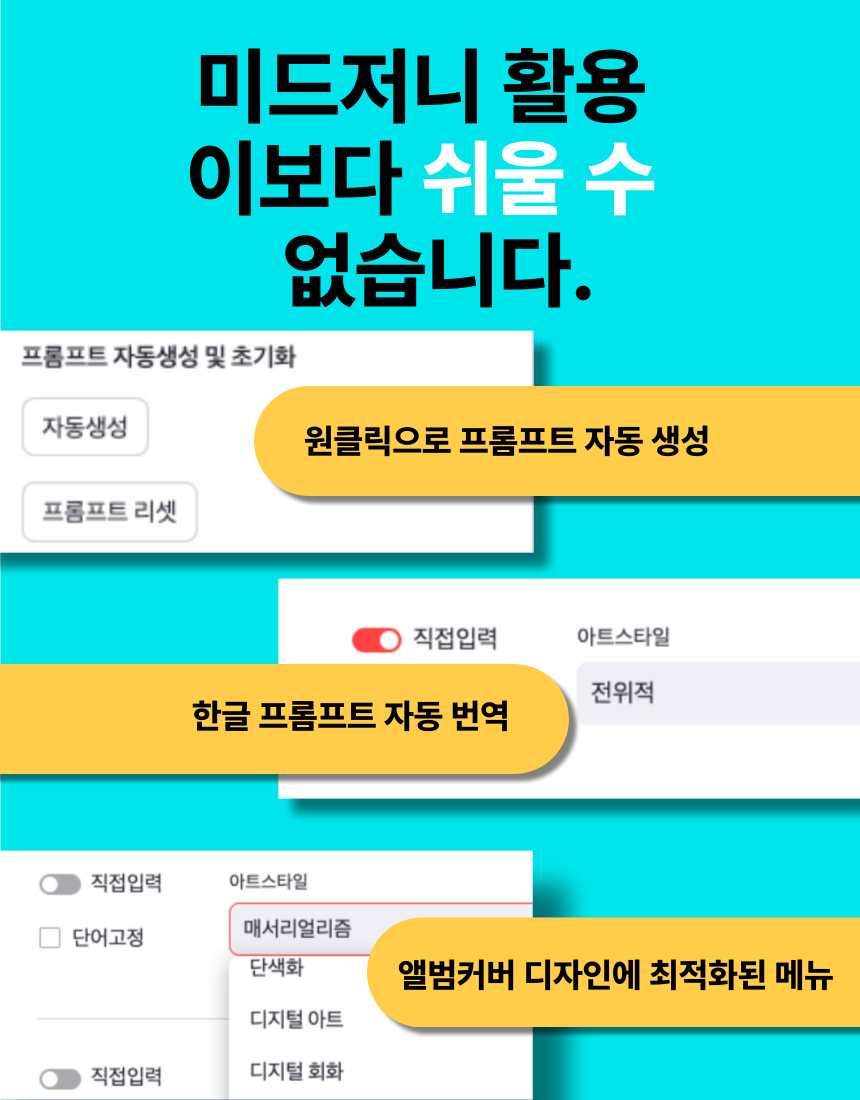 앨범커버 디자인을 위한 미드저니 프롬프트 메이커 (웹기반 프로그램 + PDF 설명서)