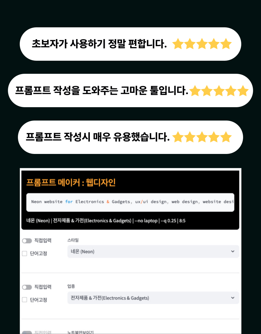 웹 디자인을 위한 미드저니 프롬프트 메이커 (웹기반 프로그램 + PDF 설명서)