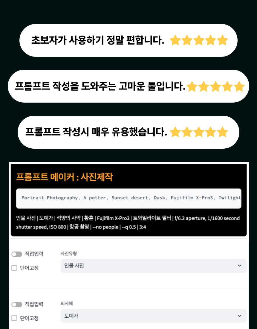 AI 사진 제작을 위한 프롬프트 메이커 (웹기반 프로그램 + PDF 설명서)